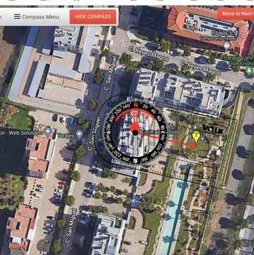 This service provides an accurate magnetic compass reading, aerial map with overlay, and technical details including: